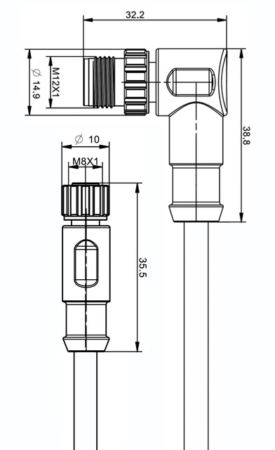 M8 to M12 Overmoldedwith CableConnector (Plug)Product, the connector components and cable are overmolded together before leaving the factory, common jacket material options include PUR and PVC, according to end-application requirements, common insulation materials for the internal conductors include PVC, SR-PVC, PP, and PE, PIN3-Core, 4-Core. matching M12 board-end connectors (receptacles) are available in solder-wire and PCB-pin versions, and M12 board-end solder versions can be customized with lead wires and resin potting upon request.