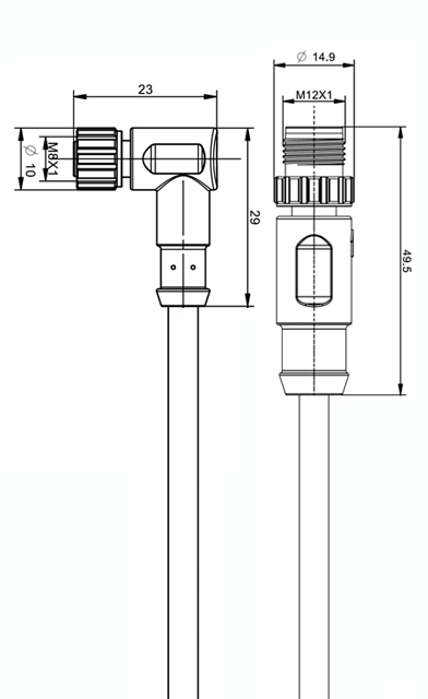 M8 to M12 Overmoldedwith CableConnector (Plug)Product, the connector components and cable are overmolded together before leaving the factory, common jacket material options include PUR and PVC, according to end-application requirements, common insulation materials for the internal conductors include PVC, SR-PVC, PP, and PE, PIN3-Core, 4-Core. matching M12 board-end connectors (receptacles) are available in solder-wire and PCB-pin versions, and M12 board-end solder versions can be customized with lead wires and resin potting upon request.