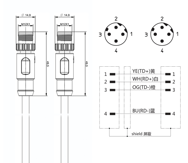 PNSCD 4-PNSCD 4-691/5 M    M12-D-CODING-ProfiNetBus ProtocolMolded Cable Fixed Mount4PinDouble Ended Male Pin Straight to Male Pin Straigh,GreenPVC(PVC),Length5M
