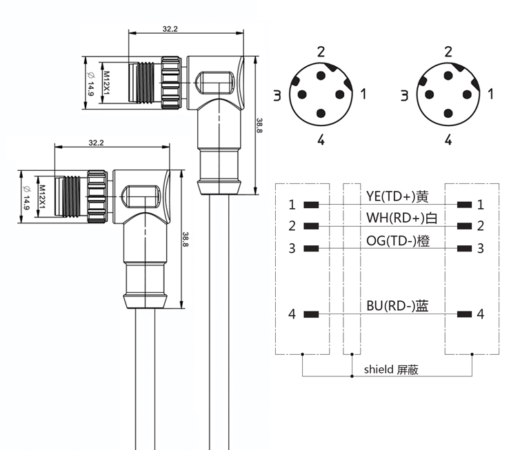 PNSWCD 4-PNSWCD 4-691/10 M    M12-D-CODING-ProfiNetBus ProtocolMolded Cable Fixed Mount4PinDouble Ended Male Pin Elbow to Male Pin Elbow,GreenPVC(PVC),Length10M