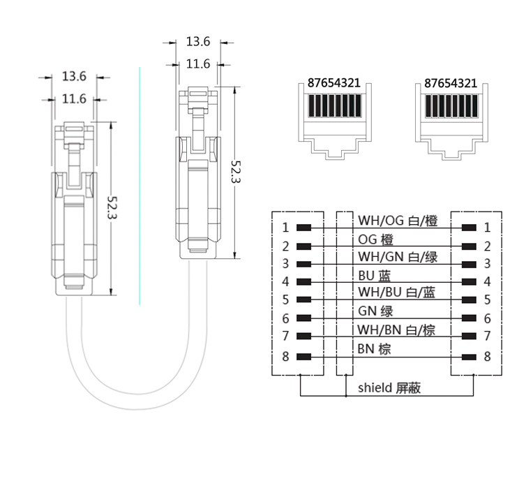 RJ45 8-RJ45 8-629/2 M    RJ45toRJ45-EtherNet/IP & EtherCATBus ProtocolMolded Cable8PinDouble EndedRJ45toRJ45,CyanTowline(Drag Chain/High Flex Cable),Length2M